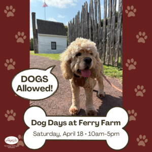 *Admission to Ferry Farm’s grounds only. Animals are not permitted in any buildings on the property, excluding Ferry Farm Visitor Center for check-in.