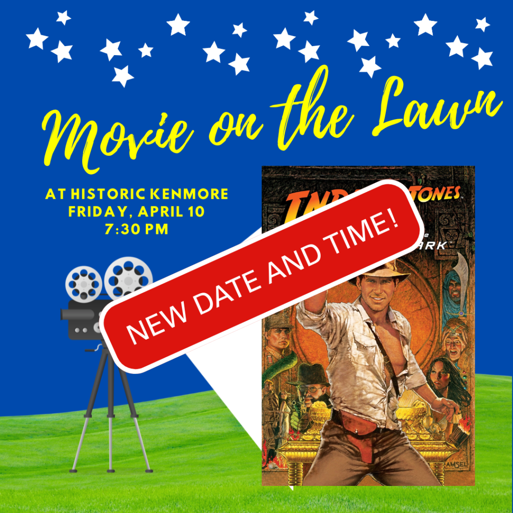 Join us on the lawn at Historic Kenmore as we screen Raiders of the Lost Ark starring Harrison Ford. Set in 1936, this Steven Spielberg epic follows archaeologist Indiana Jones as he races against time to find the Ark of the Covenant, a legendary ancient power said to make an army invincible, before the German Nazi party can get it. Will Indy succeed? Or will a booby-trapped boulder have the last laugh? Grab your whip and tune in to find out! This action-packed film is fun for the whole family.
